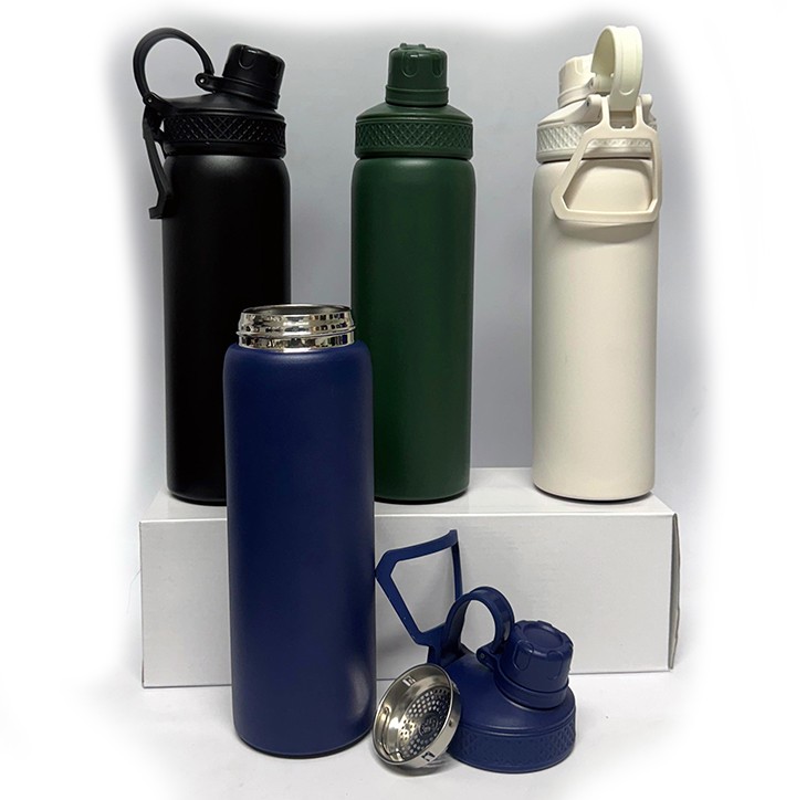 Garrafa térmica de aço inox 650 mls Com alça de borracha e infusor interno