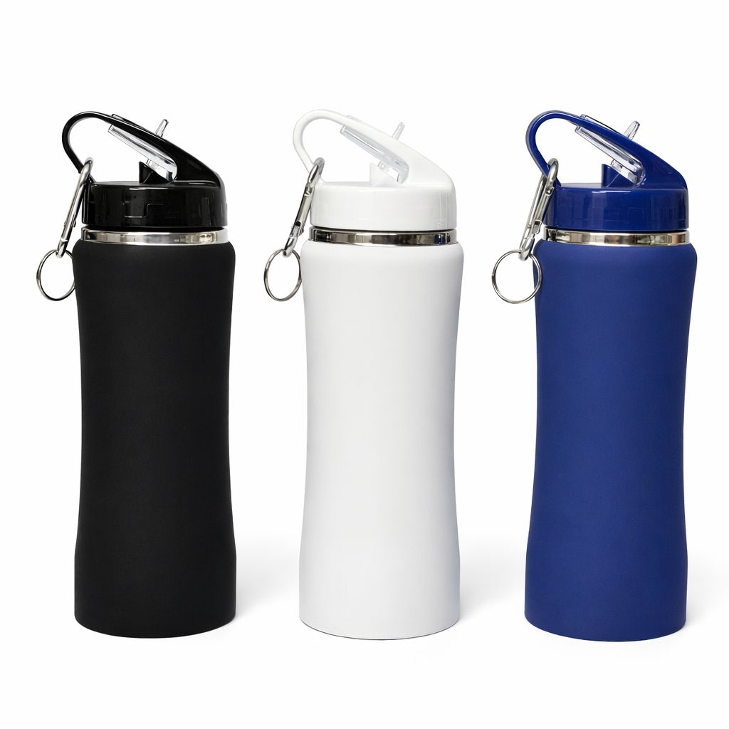 Térmica Garrafa 350ml Inox Squeeze parede dupla com bico e canudo chaveiro mosquetão